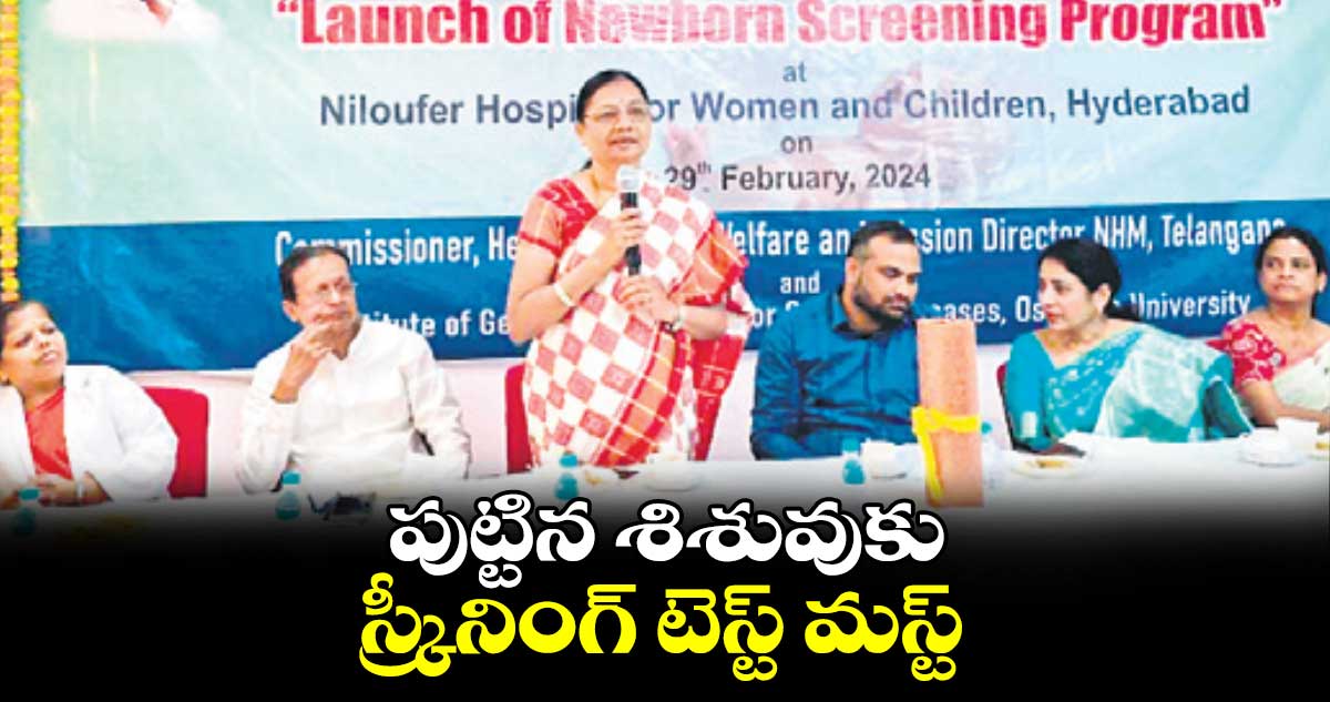 జన్యుపరమైన వ్యాధులను అరికట్టెందుకు స్క్రీనింగ్ తోడ్పడుతుందన్నారు. పుట్టిన బిడ్డ ఎంత ఆరోగ్యకరంగా ఉన్నాడో తెలుసుకుని తద్వారా శిశువుకు అందించాల్సిన పోషకాలు, మందులను అందించాలని సూచించారు. కార్యక్రమంలో ఆస్పత్రి సూపరింటెండెంట్ డాక్టర్ ఉషారాణి, డాక్టర్ అలివేలు, సీఎస్ఆర్ ఎంఓ డాక్టర్ జ్యోతి, ఇనిస్టిట్యూట్ ఆఫ్ జెనెటిక్స్ విభాగం ఉస్మానియా విశ్వవిద్యాలయం డైరెక్టర్ డాక్టర్ విజయలక్ష్మి, మెడికల్ జెనెటిక్స్ డాక్టర్ శిల్పారెడ్డి, డాక్టర్ అనిత, సిబ్బంది పాల్గొన్నారు.