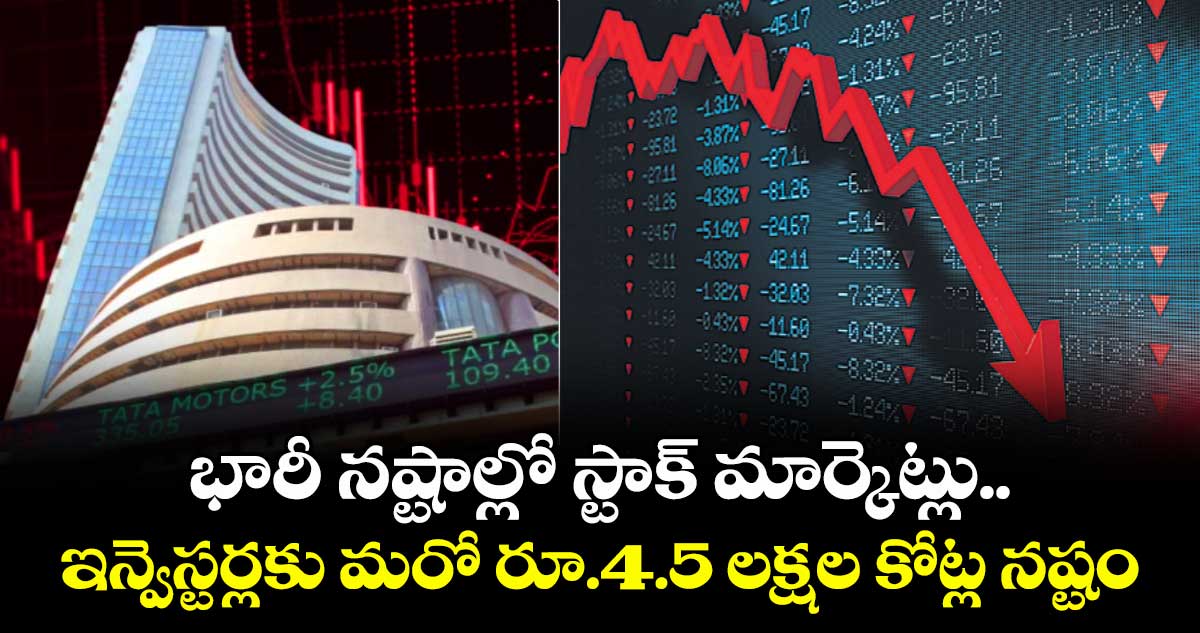 ముంబై: బెంచ్మార్క్ ఇండెక్స్లు సెన్సెక్స్, నిఫ్టీ గురువారం తీవ్ర నష్టాలతో ముగిశాయి. ఇన్వెస్టర్లు మరో రూ.4.5 లక్షల కోట్లు నష్టపోయారు. వెస్ట్ ఆసియాలో సంక్షోభం మరింత పెరగడంతో క్రూడ్ ఆయిల్ ధరలు ఒక్కసారిగా ఎగబాకాయి. దీనికి తోడు గ్లోబల్ మార్కెట్ల బలహీనత, రూపాయి పతనం, విదేశీ పెట్టుబడిదారుల (ఎఫ్ఐఐల) అమ్మకాలు ఇన్వెస్టర్ల సెంటిమెంట్ను దెబ్బతీశాయి. బీఎస్ఈ సెన్సెక్స్ గురువారం 829 పాయింట్లు (1.08శాతం) పడిపోయి 76,034.42 వద్ద ముగియగా, ఇంట్రాడేలో 992 పాయింట్లు (1.29శాతం) వరకు పతనమై 75,871.18కి చేరింది.