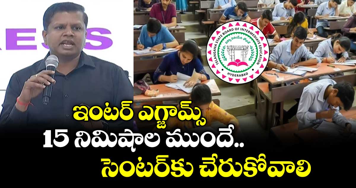 ఇంటర్ ఎగ్జామ్స్ కు మొత్తం 1,495 పరీక్ష కేంద్రాలు ఏర్పాటు చేశాం. ఉదయం 9 గంటల నుంచి మధ్యాహ్నం 12 గంటల వరకు పరీక్షలు జరగనున్నాయి. ఇప్పటికే పేరెంట్స్ మొబైల్స్ కు హాల్ టికెట్స్ పంపించాం. విద్యార్థులు 15 నిమిషాల ముందే ఎగ్జామ్ హాల్ లో ఉండేలా ఏర్పాట్లు చేసుకోవాలి. 28 వేల500 మంది ఇన్విజిలేటర్స్ తో పరీక్షలు నిర్వహిస్తున్నాం అని వెల్లడించారు.