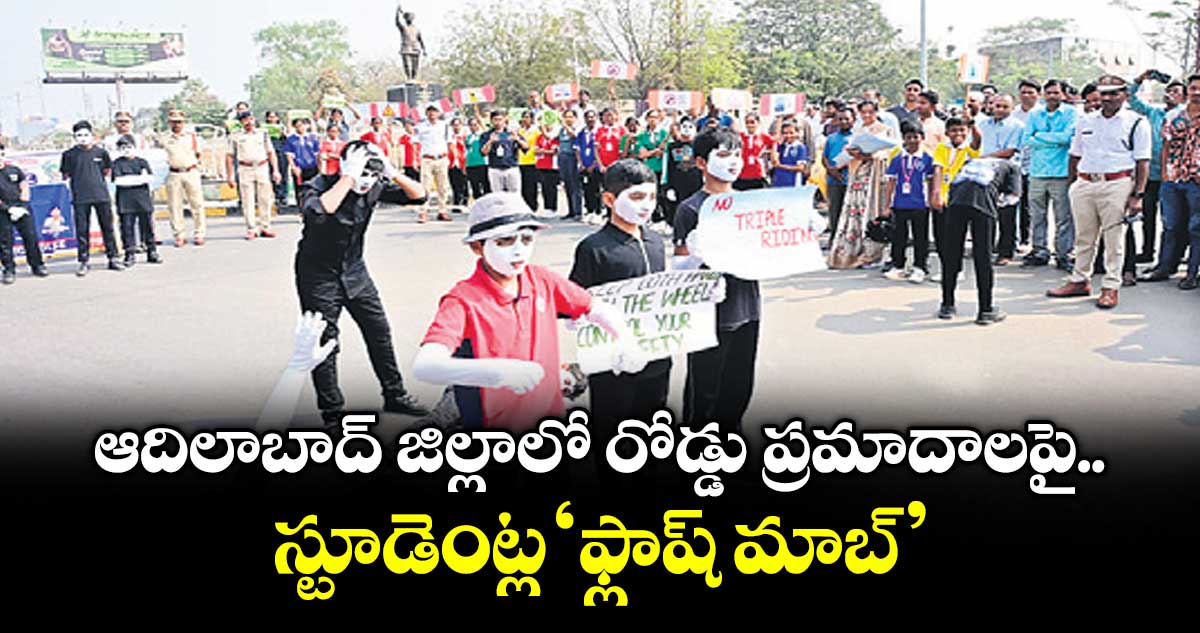 ఆదిలాబాద్, వెలుగు: రోడ్డు భద్రత మాసోత్సవాల సందర్భంగా ‘అరైవ్ అలైవ్’ కార్యక్రమంలో భాగంగా ప్రజలకు రోడ్డు భద్రత నియమాలపై జిల్లా పోలీస్ శాఖ ఆధ్వర్యంలో శనివారం స్కూల్ విద్యార్థులు ‘ఫ్లాష్ మాబ్’ కార్యక్రమం నిర్వహించారు. పట్టణంలోని కలెక్టరేట్ చౌక్, వినాయక్ చౌక్ లో ‘ఫ్లాష్ మాబ్’ చేపట్టారు. హెల్మెట్ ఆవశ్యకత, రోడ్డుపై పశువులు సంచరిస్తుండడంతో జరుగుతున్న ప్రమాదాలు, సిగ్నల్స్, ట్రాఫిక్ నియమాలపై అవగాహనతో కూడిన నృత్య ప్రదర్శన ఆకట్టుకుంది.