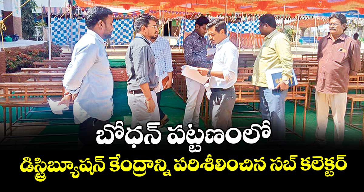 బోధన్,వెలుగు: బోధన్ పట్టణంలోని విజయమేరి స్కూల్లో సబ్ కలెక్టర్ వికాస్ మహతో డిస్ట్రిబ్యూషన్ కేంద్రాన్ని, స్ట్రాంగ్ రూంలను పరిశీలించారు. మంగళవారం ఎన్నికల సామగ్రిని పంపిణీ చేయనున్నట్లు తెలిపారు. బోధన్ పట్టణంలోని 111 పోలింగ్ కేంద్రాలకు జోనల్ ఆఫీసర్లు 8మందిని, రిజర్వులో ఇద్దరిని కేటాయించినట్టు తెలిపారు.