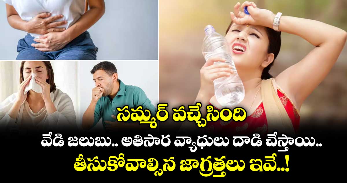 వేసవి భానుడు భగ భగ మండిపోతున్నాడు. మార్చి మొదటి వారంలోనే మద్యాహ్నం అయిందంటే జనాలు రోడ్డు మీదకు రావడానికి భయపడుతున్నారు. ఇంట్లో ఫ్యాన్లు, కూలర్లు, ఏసీలు లేకుండా ఒక్క క్షణం కూడా ఉండలేకపోతున్నారు. మొన్నటి వరకు చలికి వణికిపోయిన జనాలు ఇప్పుడు ఎండతో ఇబ్బంది. పడుతున్నారు. అయితే ఎండలతోపాటు అనేక ఆరోగ్య సమస్యలు తెచ్చిపెడుతుంది వేసవి. ఆస్తమా, ఊపిరితిత్తులు, చర్మ సమస్యలు, కలరా, విరేచనాలు, వడదెబ్బ, డీహైడ్రేషన్ లాంటి సమస్యలు బాగా ఇబ్బంది పెడతాయి. వాటినుంచి తప్పించుకోవడానికి ఎలాంటి జాగ్రత్తలు తీసుకోవాలో తెలుసుకుందాం. .