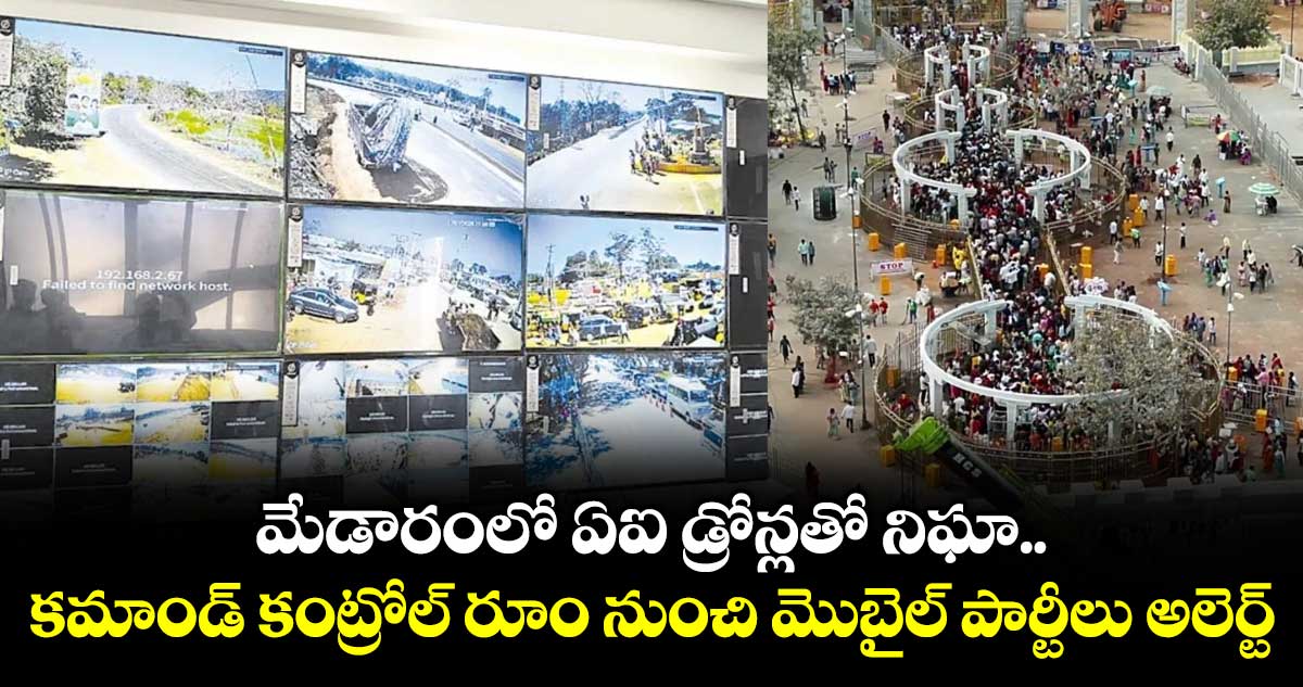 జాతర పరిసరాలను పోలీసులు ఏఐ డ్రోన్లతో గస్తీ కాస్తున్నారు. కమాండ్ కంట్రోల్ రూం నుంచి పర్యవేక్షిస్తూ ఎక్కడ రద్దీ పెరిగినా మొబైల్ పార్టీలను అలర్ట్ చేస్తున్నారు. వరంగల్ సీపీ సన్ప్రీత్ సింగ్ జాతర ట్రాఫిక్ ఇన్చార్జిగా వ్యవహరిస్తున్నారు. పస్రా జంక్షన్ నుంచి మేడారం వరకు ప్రతీ రెండు కిలోమీటర్లకు ఒక పోలీస్ చెక్ పోస్టు ద్వారా ట్రాఫిక్ నియంత్రణ చేస్తున్నారు. ట్రాఫిక్ నియంత్రణకు ఆరుగరు ఎస్పీలు, ఆరుగురు అడిషనల్ ఎస్పీలు, 26 మంది డీఏస్పీలు, 124 మంది సీఐలు, 200 మంది ఎస్సైలు, 4,138 మంది పోలీస్ సిబ్బంది డ్యూటీలో ఉన్నారు.