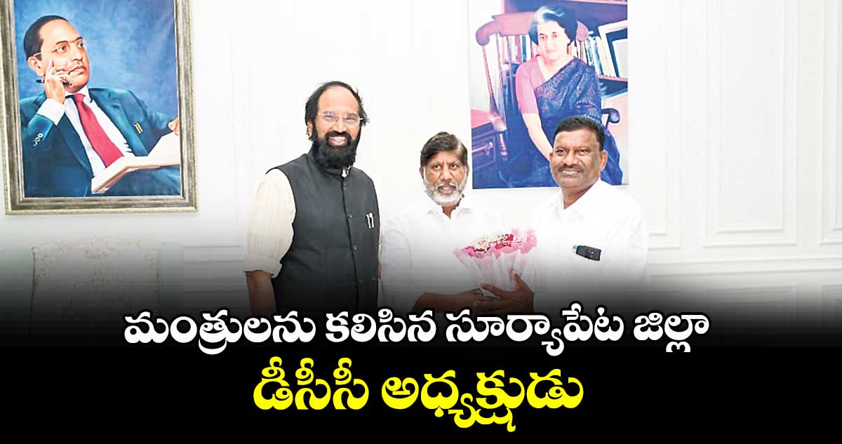 తుంగతుర్తి, వెలుగు : డిప్యూటీ సీఎం భట్టి విక్రమార్క, నీటిపారుదల శాఖ మంత్రి ఉత్తమ్కుమార్ రెడ్డిని సూర్యాపేట జిల్లా నూతన కాంగ్రెస్ అధ్యక్షుడు గుడిపాటి నర్సయ్య మర్యాదపూర్వకంగా కలిశారు. శుక్రవారం హైదరాబాద్లోని ప్రజాభవన్లో వారిని కలిసి పుష్పగుచ్చాలు అందజేశారు. జిల్లా అధ్యక్షుడిగా బాధ్యతలు అప్పగించినందుకు వారికి ఆయన ధన్యవాదాలు తెలిపారు.