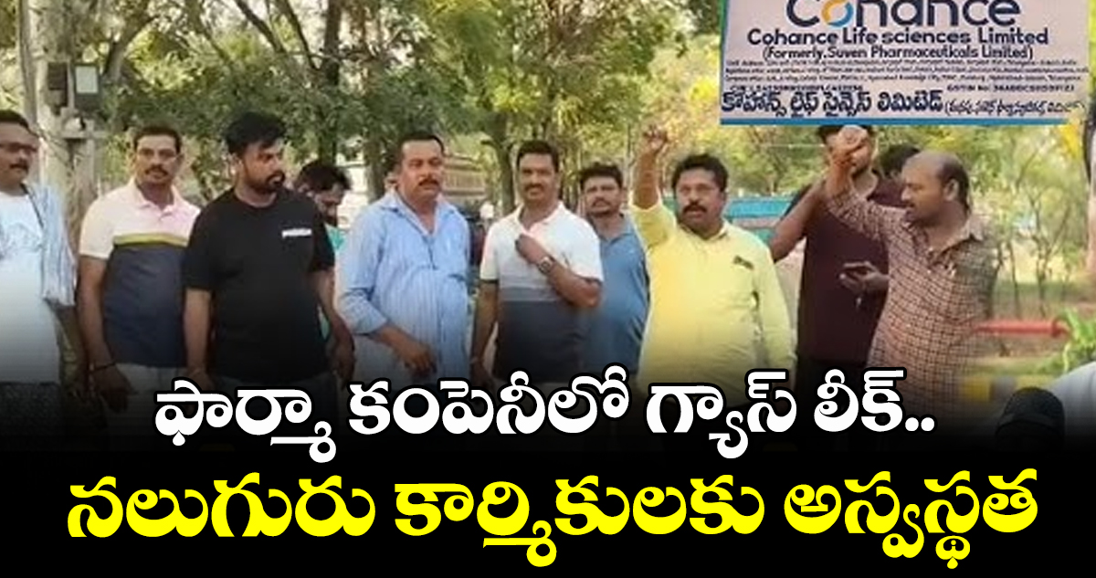 సూర్యాపేట, వెలుగు: సూర్యాపేట జిల్లా కేంద్రంలోని కోహెన్స్ ఫార్మసీ కంపెనీలో షార్ట్ సర్క్యూట్ కారణంగా గ్యాస్ లీకై ఒక్కసారిగా పొగలు వ్యాపించాయి. దీంతో అక్కడ పనిచేస్తున్న నలుగురు కార్మికులు అస్వస్థతకు గురయ్యారు. ఈ ఘటన గురువారం జరగ్గా.. నాగరాజు, అంజయ్య, వినోద్, లక్ష్మయ్య అనే కార్మికులు అస్వస్థతకు గురయ్యారు. వారిలో ఇద్దరి పరిస్థితి విషమంగా ఉండటంతో ప్రైవేట్ హాస్పిటల్కు తరలించి చికిత్స అందిస్తున్నారు.