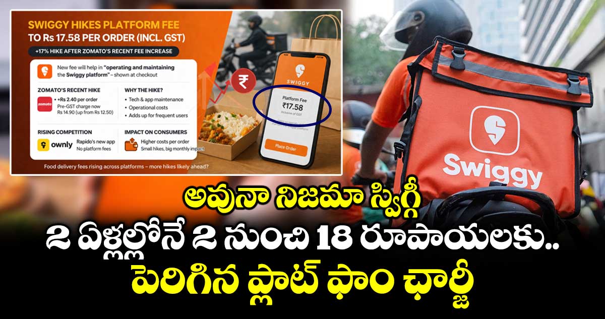 ఫీజు రూపంలో స్విగ్గీ నేరుగా రూ.17.58 వసూలు చేస్తుండగా, జొమాటో తన బేస్ ఫీజును రూ.14.9 గా నిర్ణయించి.. దానికి అదనంగా రూ.2.68 జీఎస్టీని జోడిస్తోంది. మొత్తంగా వినియోగదారుడు చెల్లించేది మాత్రం ఒక్కటే. గత 7 నెలల్లో స్విగ్గీ ఈ ఫీజును పెంచడం ఇది నాలుగోసారి కావటంతో యూజర్లు పెదవి విరుస్తున్నారు. 2023లో కేవలం రూ.2తో మొదలైన ఈ ప్లాట్ఫారమ్ ఫీజు.. ఇప్పుడు రూ.18కి పెరగటం చాలా మందిని నిరాశకు గురిచేస్తోంది. పండుగ సీజన్ రద్దీ, ఇతర నిర్వహణ ఖర్చులను సాకుగా చూపుతూ ఫుడ్ అగ్రిగేటర్లు క్రమక్రమంగా ధరలను పెంచుకుంటూ పోతున్నాయి.