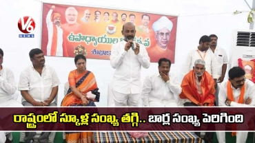 రాష్ట్రంలో స్కూళ్ల సంఖ్య తగ్గి.. బార్ల సంఖ్య పెరిగిపోయిందని ఆరోపించారు బీజేపీ రాష్ట్ర అధ్యక్షుడు బండి సంజయ్. టీచర్లకు ఇచ్చిన హ