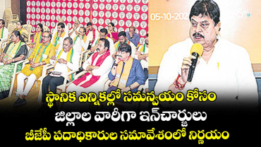 Read Moreస్థానిక ఎన్నికల్లో సమన్వయం కోసం జిల్లాల వారీగా ఇన్చార్జులు.. బీజేపీ పదాధికారుల సమావేశంలో నిర్ణయం