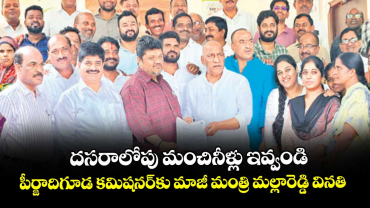 Read Moreదసరాలోపు మంచినీళ్లు ఇవ్వండి: పీర్జాదిగూడ కమిషనర్కు మాజీ మంత్రి మల్లారెడ్డి వినతి