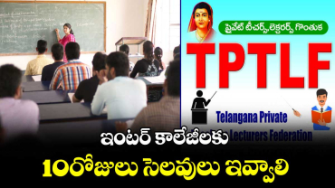 టీపీటీఎల్ఎఫ్రాష్ట్ర అధ్యక్షుడు ఏ. విజయ్ కుమార్ హైదరాబాద్ సిటీ, వెలుగు: ఇంటర్మీడియెట్ కాలేజీలకు కూడా స్కూల్స్ కి ఇచ్చినట్టు10రోజులకు పైగా సెల