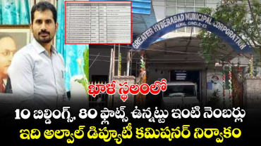 Read Moreఖాళీ స్థలంలో 10 బిల్డింగ్స్, 80 ఫ్లాట్స్ ఉన్నట్లు ఇంటి నెంబర్లు...ఇది అల్వాల్ డిప్యూటీ కమిషనర్ నిర్వాకం