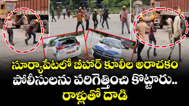 సూర్యాపేట జిల్లాలో బీహార్ కూలీలు బీభత్సం చేశారు. రోడ్లపై వీళ్ల విధ్వంసం చూసి భయంలో పరుగులు తీశారు పోలీసులు. జనం అయితే వణికిపోయారు. పాలకీడు మండలం జాన్