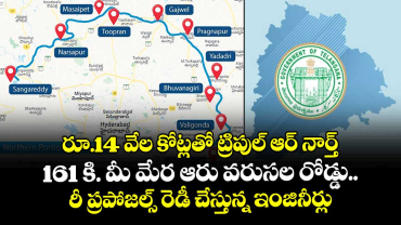 Read Moreరూ.14 వేల కోట్లతో ట్రిపుల్ ఆర్ నార్త్.. 161 కి. మీ మేర ఆరు వరుసల రోడ్డు.. రీ ప్రపోజల్స్ రెడీ చేస్తున్న ఇంజినీర్లు