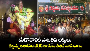 మేడారానికి పొటెత్తిన భక్తులు.. గట్టమ్మ ఆలయం దగ్గర బారులు తీరిన వాహనాలు