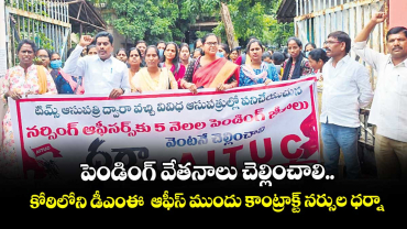 Read Moreపెండింగ్ వేతనాలు చెల్లించాలి.. కోఠిలోని డీఎంఈ ఆఫీస్ ముందు కాంట్రాక్ట్ నర్సుల ధర్నా