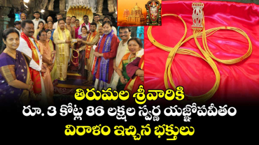 Read Moreతిరుమల శ్రీవారికి రూ. 3 కోట్ల 86 లక్షల స్వర్ణ యజ్ఞోపవీతం విరాళం ఇచ్చిన భక్తులు