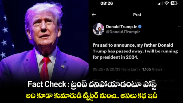 Read MoreFact Check : ట్రంప్ చనిపోయాడంటూ పోస్ట్.. అది కూడా కుమారుడి ట్విట్టర్ నుంచి.. అసలు కథ ఇదీ