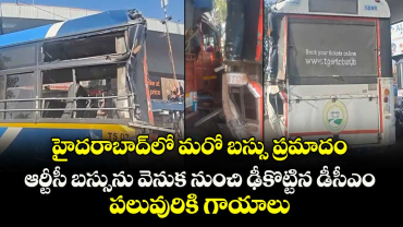 హైదరాబాద్లో మరో బస్సు ప్రమాదం.. ఆర్టీసీ బస్సును వెనుక నుంచి ఢీకొట్టిన డీసీఎం.. పలువురికి గాయాలు
