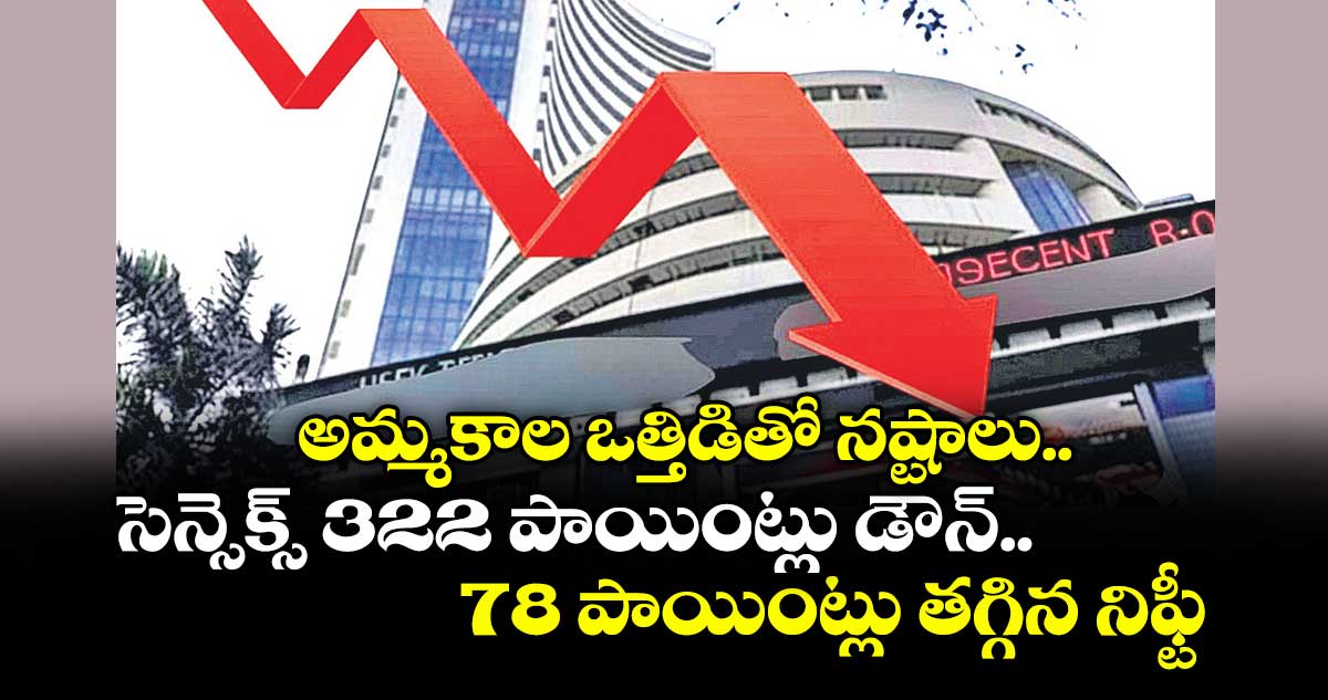 ముంబై: అమెరికా నుంచి మనదేశానికి మరోసారి టారిఫ్ ల ముప్పు పొంచి ఉండటం, వెనెజువెలాపై యూఎస్ దాడుల వల్ల భౌగోళిక రాజకీయ ఉద్రిక్తతలు పెరగడంతో స్టాక్ మార్కెట్లు సోమవారం నష్టపోయాయి. బ్లూ చిప్ కంపెనీలు హెచ్ డీఎఫ్ సీ బ్యాంక్, రిలయన్స్ ఇండస్ట్రీస్, ఐటీ సంస్థల షేర్లలో అమ్మకాల ఒత్తిడి కనిపించడంతో సూచీలు కిందకు జారాయి. 30 షేర్ల బీఎస్ ఈ సెన్సెక్స్ 322.39 పాయింట్లు తగ్గి 85,439.62 వద్ద స్థిరపడింది.