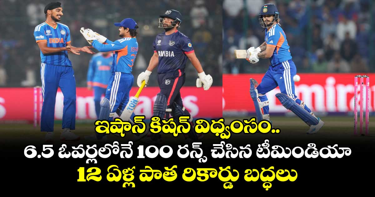 ప్రస్తుతం ఈ టీ20 ప్రపంచకప్లో భారత్కు ఫస్ట్ ఛాయిస్ వికెట్ కీపర్ -బ్యాటర్గా ఉన్న ఇషాన్ కిషన్.. బ్యాటింగ్లో తన అద్బుతమైన ఫామ్తో జట్టుకు అండగా నిలుస్తున్నాడు. భారత్ నిర్ణీత 20 ఓవర్లలో 9 వికెట్లకు 209 పరుగులు చేసి నమీబియాకు భారీ టార్గెట్ నిర్దేశించింది. నమీబియా జట్టు ఈ టార్గెట్ను ఛేజ్ చేసే క్రమంలో.. 116 పరుగులకే ఆలౌట్ అయింది. ఈ మ్యాచ్లో భారత్ బ్యాటింగ్తో క్రికెట్ ఫ్యాన్స్ తెగ ఖుషీ అయిపోయారు. హార్డ్ హిట్టింగ్ షాట్స్తో పాటు రికార్డులను ఈ ఒకే మ్యాచ్తో టీమిండియా తిరగరాసింది.