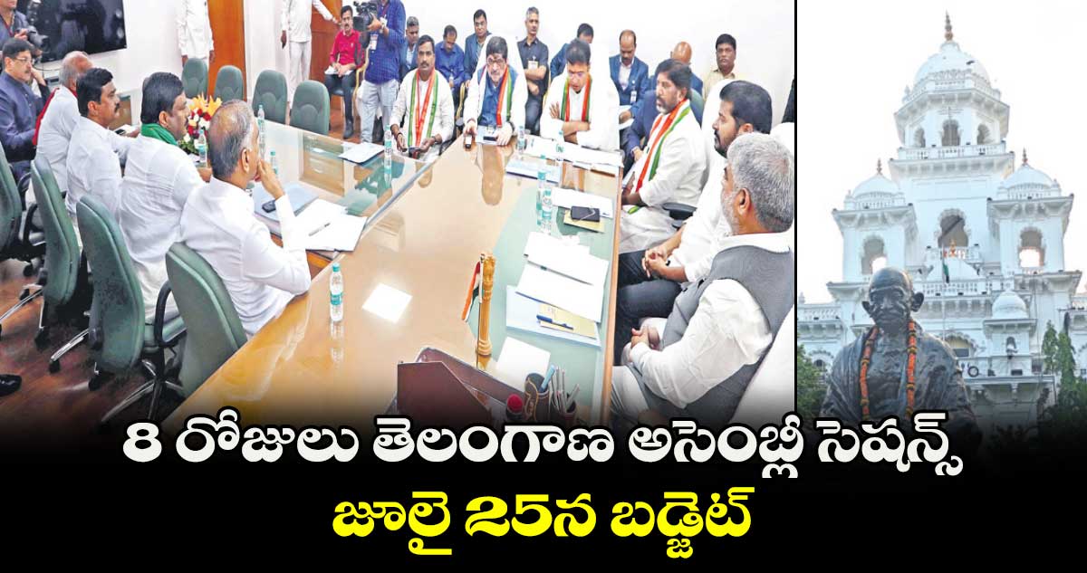 హైదరాబాద్, వెలుగు: బడ్జెట్ సమావేశాలను 8 రోజులపాటు నిర్వహించాలని అసెంబ్లీ బిజినెస్ అడ్వైజరీ కమిటీ(బీఏసీ) నిర్ణయించింది. ఈ నెల 25న డిప్యుటీ సీఎం, ఆర్థిక శాఖ మంత్రి భట్టి విక్రమార్క సభలో బడ్జెట్ ప్రవేశపెట్టనున్నారు. బడ్జెట్పై ఎమ్మెల్యేలు ప్రిపేర్ అయ్యేందుకు ఆ మరుసటి రోజును సెలవుగా ప్రకటించారు. ఈ నెల 27 బడ్జెట్పై చర్చించడంతోపాటు అదేరోజు ఆర్థిక మంత్రి రిప్లై ఇవ్వనున్నారు. మరుసటి రోజు ఆదివారం సభకు సెలవు ఇచ్చారు. సోమవారం, మంగళవారం బడ్జెట్ పద్దులపై చర్చించనున్నారు. బుధవారం అప్రొప్రియేషన్ బిల్లుపై చర్చించి, సభ ఆమోదం పొందనున్నారు.