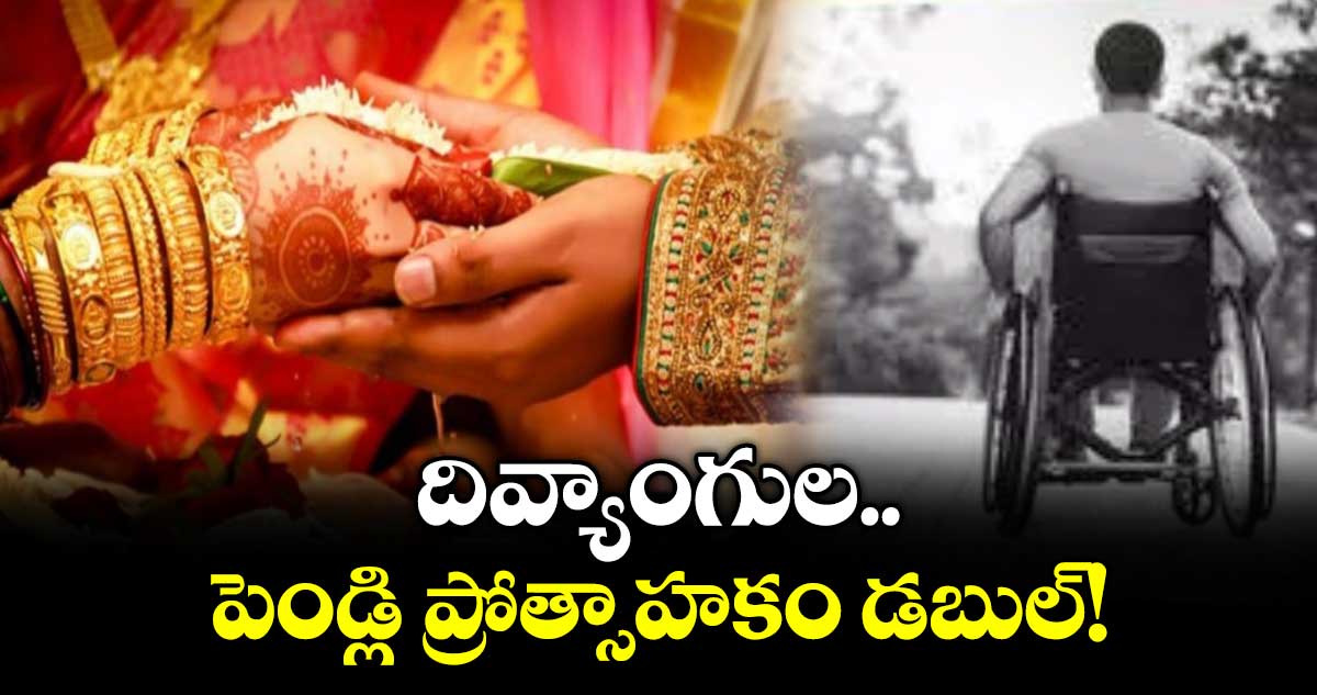 హైదరాబాద్, వెలుగు: రాష్ట్ర ప్రభుత్వం దివ్యాంగులకు శుభవార్త చెప్పింది. ఇద్దరు దివ్యాంగులు పెండ్లి చేసుకుంటే ఇచ్చే ప్రోత్సాహకాన్ని మ్యారేజ్ ఇన్సెంటివ్ అవార్డును భారీగా పెంచింది. ఇప్పటి వరకు ఇస్తున్న లక్ష రూపాయలను ఏకంగా రెండు లక్షలకు పెంచుతూ తాజాగా ఉత్తర్వులు జారీ చేసింది. ఇద్దరు దివ్యాంగులు వివాహం చేసుకుంటే ప్రభుత్వం నుంచి రూ. 1లక్ష ఇన్సెంటివ్ అందుతుండగా.. దాన్ని ఇప్పుడు రూ. 2 లక్షలకు పెంచింది.