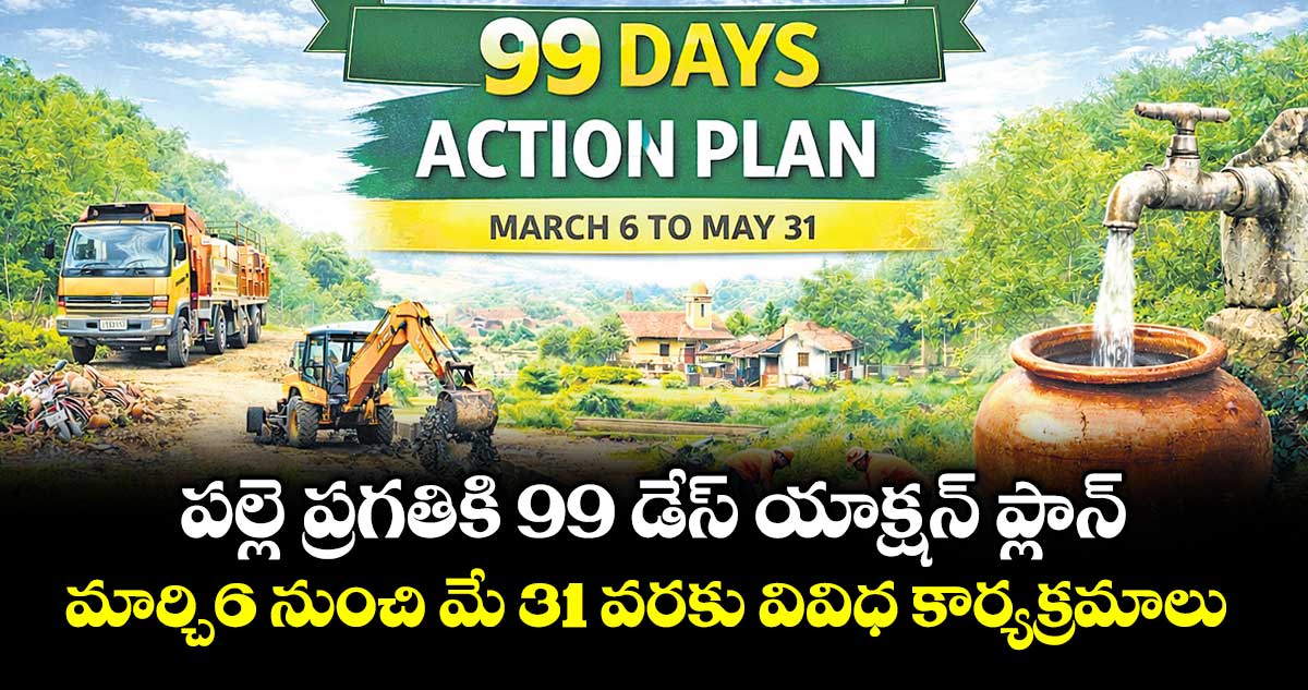 హైదరాబాద్, వెలుగు: రాష్ట్రంలోని పల్లెల రూపురేఖలు మార్చేందుకు ప్రభుత్వం నడుం బిగించింది. రాబోయే వర్షాకాలాన్ని దృష్టిలో ఉంచుకుని, గ్రామీణ ప్రాంతాల్లో మౌలిక సదుపాయాల కల్పన, పారిశుధ్య మెరుగుదలే లక్ష్యంగా 99 రోజుల ప్రత్యేక కార్యాచరణ ప్రకటించింది. ఈ నెల 6 నుంచి మే 31 వరకు ఏ రోజు ఏ పని పూర్తి చేయాలో స్పష్టమైన గడువు విధిస్తూ పంచాయతీరాజ్ శాఖ ఉత్తర్వులు జారీ చేసింది.