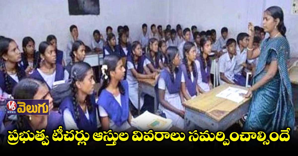 తెలంగాణ ప్రభుత్వం సంచలన నిర్ణయం తీసుకుంది. ప్రభుత్వ టీచర్లు ఆస్తుల వివరాలు సమర్పించాలని ఆదేశాలు జారీ చేసింది. ప్రతి సంవత్సరం ఉపాధ్యాయులు ఆస్తి వివరాలు సబ్మిట్ చేయాల్సిందేనని పాఠశాల విద్యాశాఖ పేర్కొంది. స్థిర, చర ఆస్తులు అమ్మినా.. కొన్నా.. ముందస్తు అనుమతి తీసుకోవాలని ఆదేశించారు. విద్యాశాఖలో పని చేస్తున్న ఉద్యోగులందరూ వార్షిక ప్రాపర్టీ స్టేట్ మెంట్ సమర్పించాలని సూచించింది.