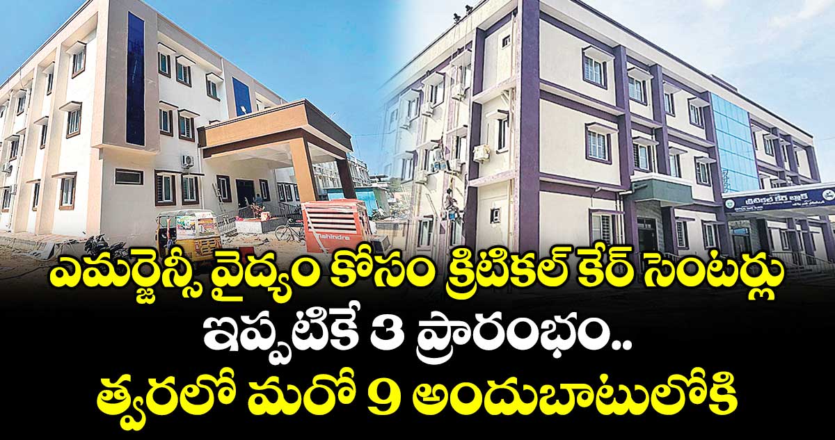 హైదరాబాద్, వెలుగు: ఎమర్జెన్సీ సమయాల్లో అత్యవసర వైద్య సేవలను అందించడం ద్వారా ప్రజల ప్రాణాలు కాపాడేందుకు రాష్ట్ర ప్రభుత్వం క్రిటికల్ కేర్ సెంటర్లను ఏర్పాట్లు చేస్తున్నది. ప్రమాదాలు జరిగినా, హార్ట్ స్ట్రోక్ వచ్చినా, విష జ్వరాలు ప్రబలినా.. ఇకపై హైదరాబాద్ కు పరుగులు తీయాల్సిన అవసరం లేకుండా చర్యలు తీసుకుంటున్నది. ప్రజలకు తమ సొంత జిల్లాల్లోనే కార్పొరేట్ స్థాయి ఎమర్జెన్సీ వైద్యం అందించేందుకు క్రిటికల్ కేర్ బ్లాక్(సీసీబీ)లను విడతల వారీగా అందుబాటులోకి తీసుకువస్తున్నది. రాష్ట్రవ్యాప్తంగా 31 సీసీబీలను ఏర్పాటు చేస్తుండగా, ఇప్పటికే సంగారెడ్డి, నల్గొండ, నిజామాబాద్ లో క్రిటికల్ కేర్ బ్లాకులు అందుబాటులోకి వచ్చాయి.