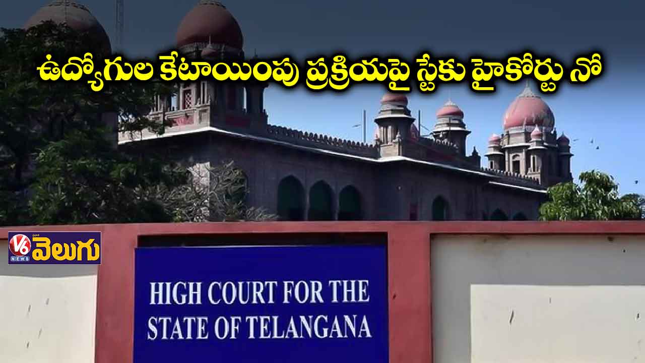 ఉద్యోగుల కేటాయింపు ప్రక్రియపై స్టే ఇచ్చేందుకు హైకోర్టు నిరాకరించింది. రాష్ట్రపతి, గతంలోని కోర్టు ఉత్తర్వులకు విరుద్ధంగా జీవోలు ఉన్నాయంటూ 226 మంది టీచర్లు వేసిన పిటిషన్ పై చీఫ్ జస్టిస్ సతీష్ చంద్ర శర్మ నేతృత్వంలోని ధర్మాసనం విచారణ జరిపింది. ప్రభుత్వ వాదన వినకుండా ఎలాంటి ఉత్తర్వులు ఇవ్వలేమని హైకోర్టు తెలిపింది. అయితే పిటిషన్లపై 4 వారాల్లో వివరణ ఇవ్వాలని రాష్ట్ర ప్రభుత్వానికి నోటీసులు జారీ చేసింది.