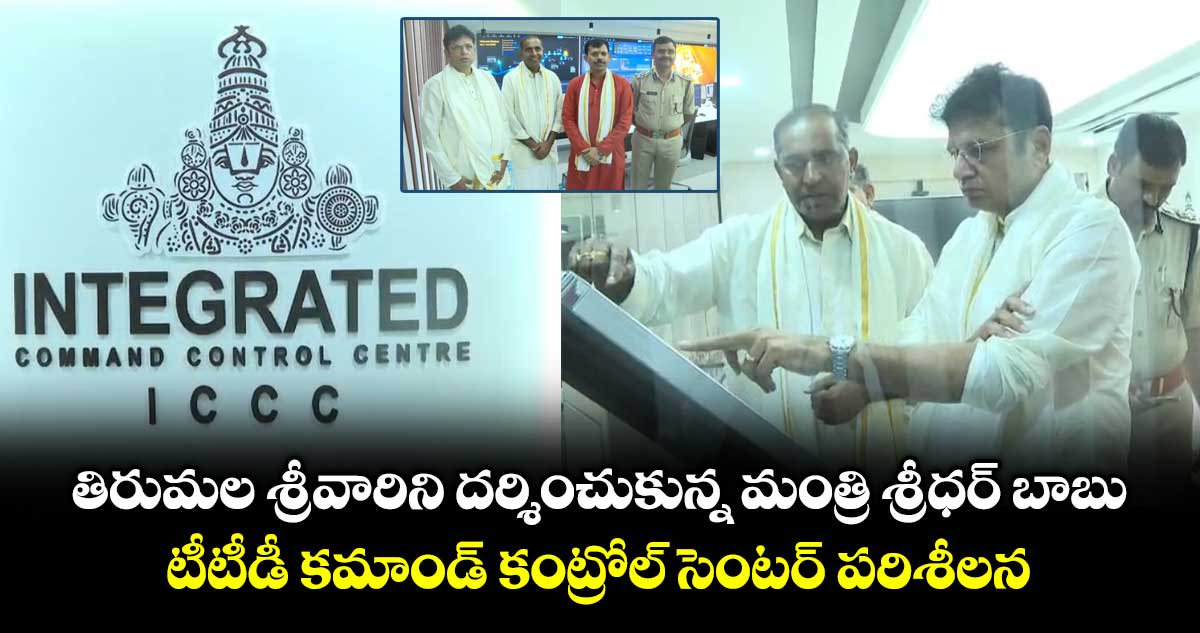 తిరుపతి ఎస్పీ సుబ్బరాయుడు, టీటీడీ CV&SO మురళీకృష్ణ ICCC పని తీరును మంత్రి శ్రీధర్ బాబుకు వివరించారు. ఈ సందర్భంగా మంత్రి శ్రీధర్ బాబు మాట్లాడుతూ, భక్తులకు మెరుగైన సౌకర్యాలు అందించడంలో సెంటర్ కీలక పాత్ర పోషించడం చాలా సంతోషమన్నారు.