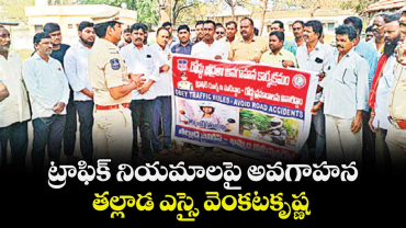 తల్లాడ, వెలుగు : రోడ్డు భద్రత, ట్రాఫిక్ నియమాలపై ప్రజలకు పూర్తి అవగాహన ఉండాలని తల్లాడ ఎస్సై వెంకటకృష్ణ అన్నారు. రోడ్డు భద్రత మాసోత్సవాలు సందర్బం
