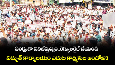 Read Moreఏండ్లుగా పనిచేస్తున్నం..రెగ్యులరైజ్ చేయండి..విద్యుత్ కార్యాలయం ఎదుట కార్మికుల ఆందోళన