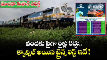 మోంథా తుఫాన్ ఎఫెక్ట్: వందకు పైగా రైళ్లు రద్దు.. క్యాన్సిల్ అయిన ట్రైన్స్ లిస్ట్ ఇదే !