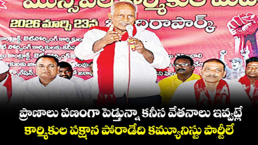 Read Moreప్రాణాలు పణంగా పెడ్తున్నా కనీస వేతనాలు ఇవ్వట్లే.. కార్మికుల పక్షాన పోరాడేది కమ్యూనిస్టు పార్టీలే..