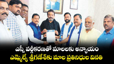 Read Moreఎస్సీ వర్గీకరణతో మాలలకు అన్యాయం..ఎమ్మెల్యే శ్రీగణేశ్కు మాల ప్రతినిధుల వినతి