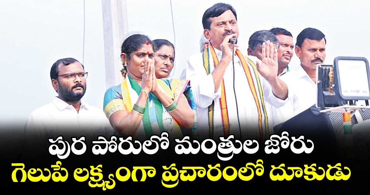 ప్రజా ప్రభుత్వం చేస్తున్న సంక్షేమ పథకాలను ప్రజలకు వివరించారు. కరీంనగర్ జిల్లా చొప్పదండి మండలం గుమ్లాపూర్ గ్రామంలో మంత్రి తుమ్మల నాగేశ్వరరావు మాట్లాడారు. ఎన్నిక ఏదైనా విజయం కాంగ్రెస్దేనని ధీమా వ్యక్తం చేశారు. ప్రతిపక్షాలు పనికిమాలిన విమర్శలతో ప్రజలను తప్పుదోవ పట్టిస్తున్నాయని, కాంగ్రెస్ నేతలు విమర్శలను తిప్పికొడుతూ అప్రమత్తంగా ఉండాలని పిలుపునిచ్చారు. పెద్దపల్లి జిల్లా మంథని పట్టణంలో మంత్రి శ్రీధర్ బాబు ఇంటింటి ప్రచారం నిర్వహించారు. అధికార పార్టీతోనే అభివృద్ధి సాధ్యమని, కాంగ్రెస్ అభ్యర్థులను కౌన్సిలర్లుగా గెలిపించుకోవాలని ప్రజలకు పిలుపునిచ్చారు.