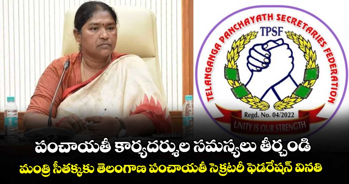 ఈ సందర్భంగా మంత్రి సీతక్క మాట్లాడారు. పంచాయతీ కార్యదర్శుల సమస్యల పరిష్కారానికి ప్రభుత్వం కట్టుబడి ఉందని తెలిపారు. పంచాయతీ కార్యదర్శులు కుటుంబ సమేతంగా మేడారం సమ్మక్క– సారక్క తల్లులను దర్శించుకోవాలని సూచించారు. మేడారంలో విధుల్లో ఉన్న ఉద్యోగులంతా జాతరను సక్సెస్ చేయాలన్నారు. అనంతరం పీఆర్, ఆర్డీ డైరెక్టర్ శ్రుతి ఓజాను కలిసి పంచాయతీ కార్యదర్శులు ఎదుర్కొంటున్న సమస్యలపై వినతి పత్రం అందించారు.