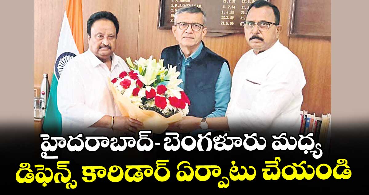న్యూఢిల్లీ, వెలుగు: హైదరాబాద్– -బెంగళూరు మధ్య డిఫెన్స్ కారిడార్ ఏర్పాటు చేసి దేశ రక్షణ రంగ అభివృద్ధికి ఊతమివ్వాలని కేంద్రానికి తెలంగాణ ప్రభుత్వ ప్రత్యేక ప్రతినిధి ఏపీ జితేందర్ రెడ్డి విజ్ఞప్తి చేశారు. బుధవారం ఢిల్లీలో ఎంపీ మల్లు రవితో కలిసి కేంద్ర రక్షణ శాఖ కార్యదర్శి రాజేశ్ కుమార్ సింగ్ను ఆయన ఛాంబర్లో కలిసి ఈ విషయంపై చర్చించారు. సమావేశంలో కేంద్ర ప్రభుత్వ ప్రాజెక్టులు, ప్రాయోజిత పథకాల సమన్వయ కార్యదర్శి అద్వైత్ కుమార్ సింగ్ కూడా ఉన్నారు. గతంలోనే సీఎం రేవంత్ రెడ్డి ప్రధాని మోదీ, రక్షణ మంత్రి రాజ్నాథ్ సింగ్కు లేఖలు రాసిన విషయాన్ని గుర్తుచేశారు.