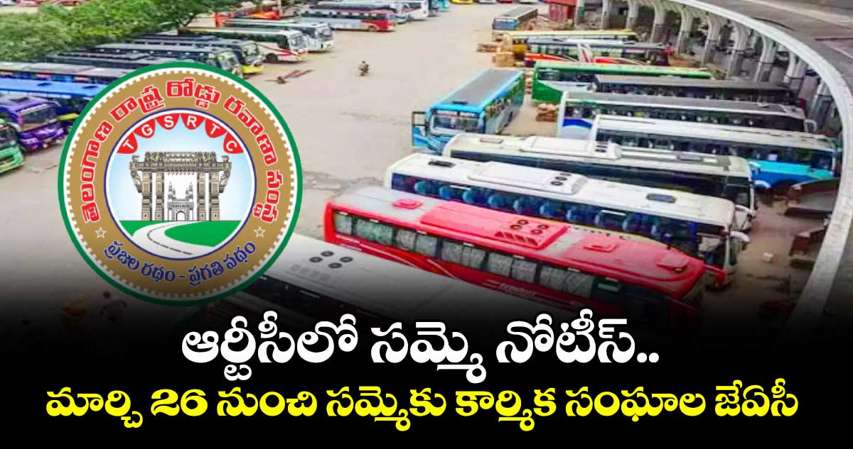 ఆర్టీసీ కార్మికులు ఎదుర్కొంటున్న పలు సమస్యల పరిష్కారానికి పారిశ్రామిక వివాదాల చట్టం 1947 సెక్షన్ 22 (1)లోని నిబంధనలకు అనుగుణంగా సమ్మె నోటీసు ఇచ్చామన్నారు. ఈ నెల 26లోపు ప్రభుత్వం తమతో చర్చలు జరపాలని, లేదంటే రాష్ట్రవ్యాప్తంగా అన్ని డిపోల్లో ఈ నెల 27 మొదటి షిప్ట్ నుంచి ఏ క్షణమైనా కార్మికులు సమ్మెకు దిగుతారని జేఏసీ నేతలు స్పష్టం చేశారు. కార్మిక చట్టాల ప్రకారం నోటీసు ఇచ్చిన 14 రోజులకు సమ్మెలో పాల్గొనవచ్చని చెప్పారు.