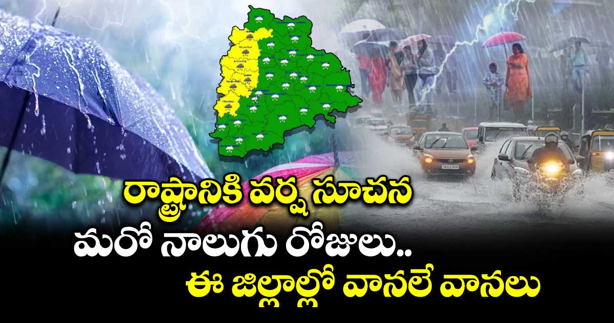బుధవారం(ఈరోజు) అదిలాబాద్, కొమరం ఆసిఫాబాద్, మంచిర్యాల, జగిత్యాల, నిర్మల్, నిజామాబాద్, రాజన్న సిరిసిల్ల, కామారెడ్డి, సంగారెడ్డి, మెదక్, సిద్దిపేట, హనుమకొండ, వరంగల్, జనగాం, యాదాద్రి, భువనగిరి, హైదరాబాద్, రంగారెడ్డి, వికారాబాద్, నారాయణపేట, మహబూబ్ నగర్, నాగర్ కర్నూల్, వనపర్తి, జోగులాంబ గద్వాల్ జిల్లాలకు ఎల్లో అలర్ట్ జారీ చేసింది.
