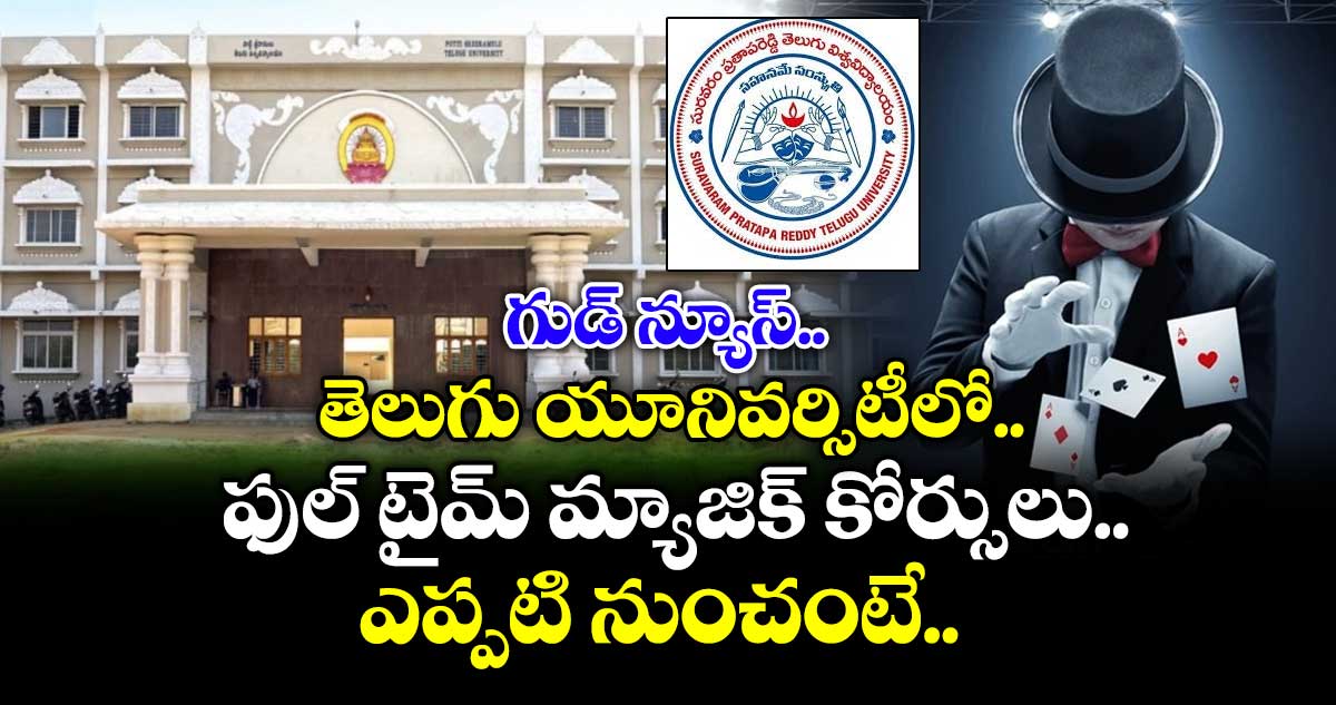 కళలకు సంబంధించిన కోర్సులకు పెట్టింది పేరయిన సురవరం ప్రతాపరెడ్డి తెలుగు యూనివర్సిటీ (గతంలో పొట్టి శ్రీరాములు తెలుగు యూనివర్సిటీ).. మరో కొత్త కోర్సును ప్రవేశ పెట్టనున్నట్లు ప్రకటించింది. ఇప్పటికే జానపద కళలు, సంప్రదాయ నృత్యం, సంప్రదాయ సంగీతం, డైరెక్షన్, యాక్టింగ్.. ఇలా వివిధ కళారూపాలకు సంబంధించిన కోర్సులు అందించి ప్రత్యేకత చాటుకున్న యూనివర్సిటీలో.. కొత్తగా మ్యాజిక్ కోర్సును ఇంట్రడ్యూస్ చేయనున్నట్లు యూనివర్సిటీ వీసీ ప్రకటించారు.