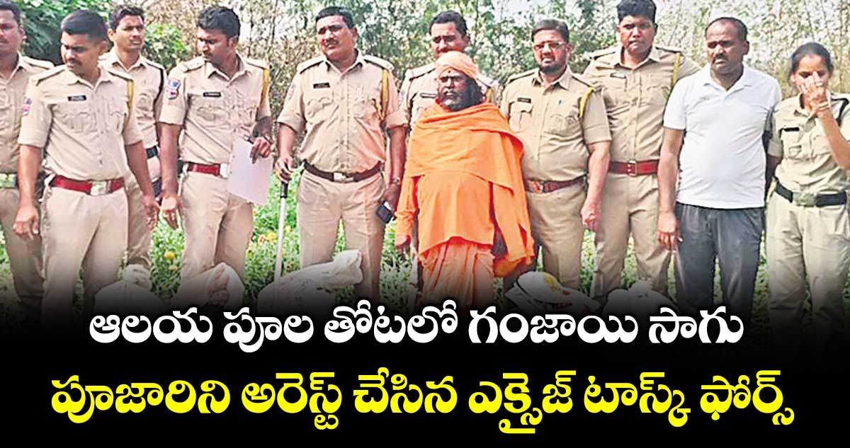 ఆలయ ఆవరణలోని బంతిపూల తోటలో గంజాయి సాగు చేస్తుండగా అవాక్కయ్యారు. పూజారి నర్సయ్యను అదుపులోకి తీసుకుని విచారించగా.. చాలాకాలంగా గంజాయి సాగు చేస్తు ప్యాకెట్లుగా అమ్ముతున్నట్టు చెప్పాడు. 685 గంజాయి మొక్కలు,17.741 కేజీల గంజాయి, 0.897 గ్రాముల విత్తనాలు, రూ.30 వేల నగదు, వేయింగ్ మెషీన్ సీజ్ చేశారు.