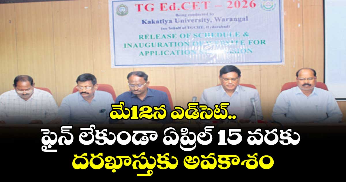 కేయూ క్యాంపస్, వెలుగు: బీఎడ్ కోర్సుల్లో ప్రవేశాల కోసం నిర్వహించే ‘టీజీ ఎడ్సెట్–-2026’ నోటిఫికేషన్ విడుదలైంది. ఈ మేరకు సోమవారం కాకతీయ యూనివర్సిటీ సెనెట్ హాలులో ఎడ్సెట్ చైర్మన్, కేయూ వీసీ ప్రొఫెసర్ కె. ప్రతాప్ రెడ్డి పరీక్షా షెడ్యూల్ను విడుదల చేశారు. ఈ సందర్భంగా ఆయన మాట్లాడారు. మే 12న రాష్ట్రవ్యాప్తంగా 16 కేంద్రాల్లో ప్రవేశ పరీక్ష నిర్వహించనున్నట్టు తెలిపారు. మంగళవారం నుంచే ఆన్లైన్ దరఖాస్తుల ప్రక్రియ ప్రారంభమవుతుందని చెప్పారు.