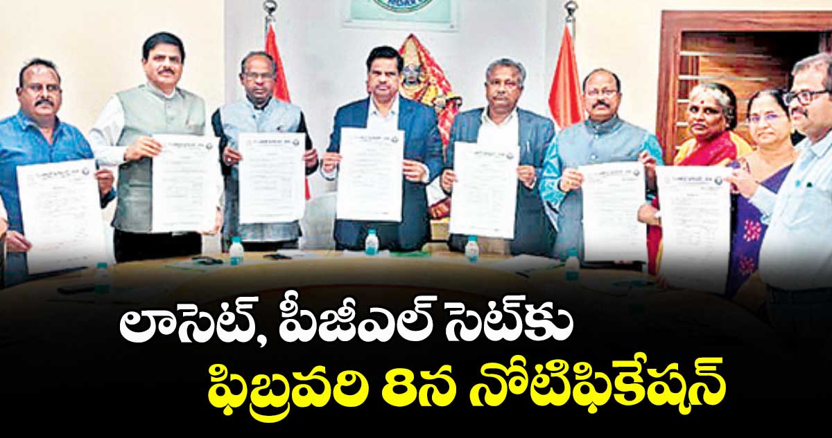 హైదరాబాద్, వెలుగు: రాష్ట్రంలో ఎల్ఎల్బీ, ఎల్ఎల్ఎం కోర్సుల్లో ప్రవేశాలకు నిర్వహించే టీజీ లాసెట్, పీజీఎల్ సెట్–2026 షెడ్యూల్ విడుదలైంది. మంగళవారం హైదరాబాద్లోని హయ్యర్ ఎడ్యుకేషన్ కౌన్సిల్ లో టీజీసీహెచ్ఈ చైర్మన్ ప్రొఫెసర్ బాలకిష్టారెడ్డి నేతృత్వంలో టీజీలాసెట్ సమావేశమైంది. ఈ సందర్భంగా ఆయా ప్రవేశపరీక్షల షెడ్యూల్ పై చర్చించి, ఫిబ్రవరి 8న నోటిఫికేషన్ రిలీజ్ చేశారు. ఫిబ్రవరి 10 నుంచి ఆన్లైన్లో అప్లికేషన్లు తీసుకుంటారు.