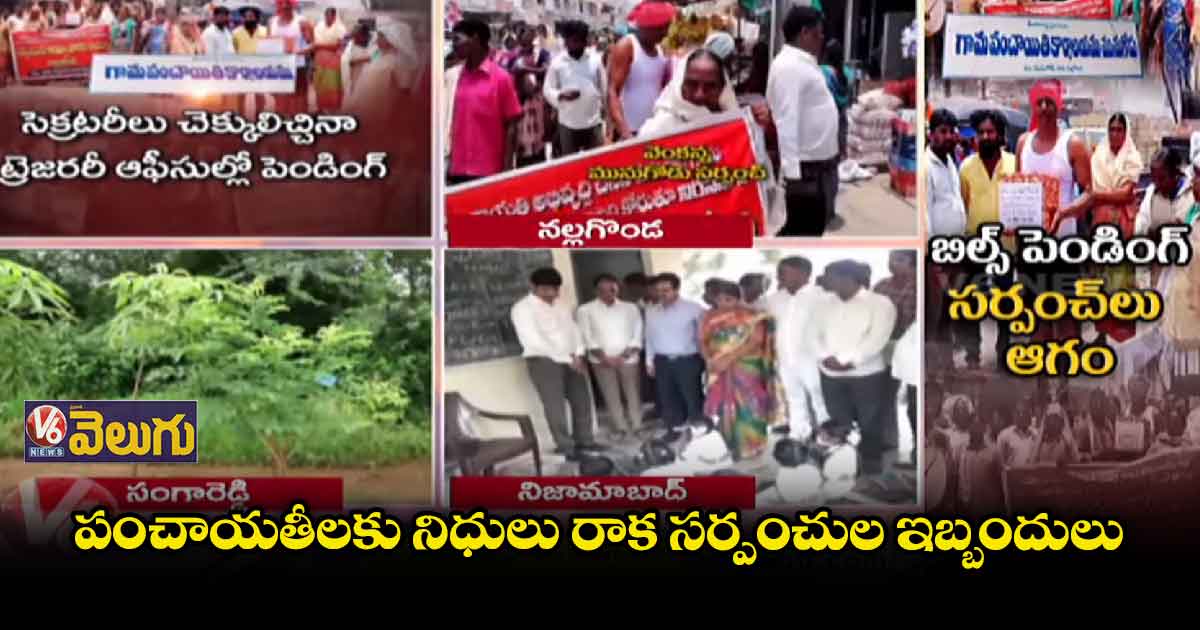 తెలంగాణ రాష్ట్రంలో గ్రామ సర్పంచుల పరిస్థితులు చాలా దయనీయంగా ఉన్నాయి. గ్రామ పంచాయతీల్లో చేసిన అభివృద్ధి పనులకు బిల్లులు రాక సర్పంచులు ఆందోళన వ్యక్తం చేస్తున్నారు. అప్పులు చేసి పనులు చేస్తే అయిదారు నెలలుగా బిల్స్ రావడం లేదు. చేసిన అప్పులకు వడ్డీలు పెరిగి చాలా మంది సర్పంచులు అప్పుల ఊబిలో కూరుకుపోతున్నారు. ఉద్యోగుల జీతాలు, కరెంట్ ఛార్జీలు మినహా ఒక్కో పంచాయతీలో బిల్లులన్నీ పెండింగ్ లోనే ఉన్నాయి. చేసిన పనులకు బిల్లులు రాక, మళ్లీ ఏమైనా అభివృద్ధి పనులు చేద్దామంటే చేతిలో చిల్లిగవ్వలేక నానా ఇబ్బందులు పడుతున్నారు సర్పంచులు.
