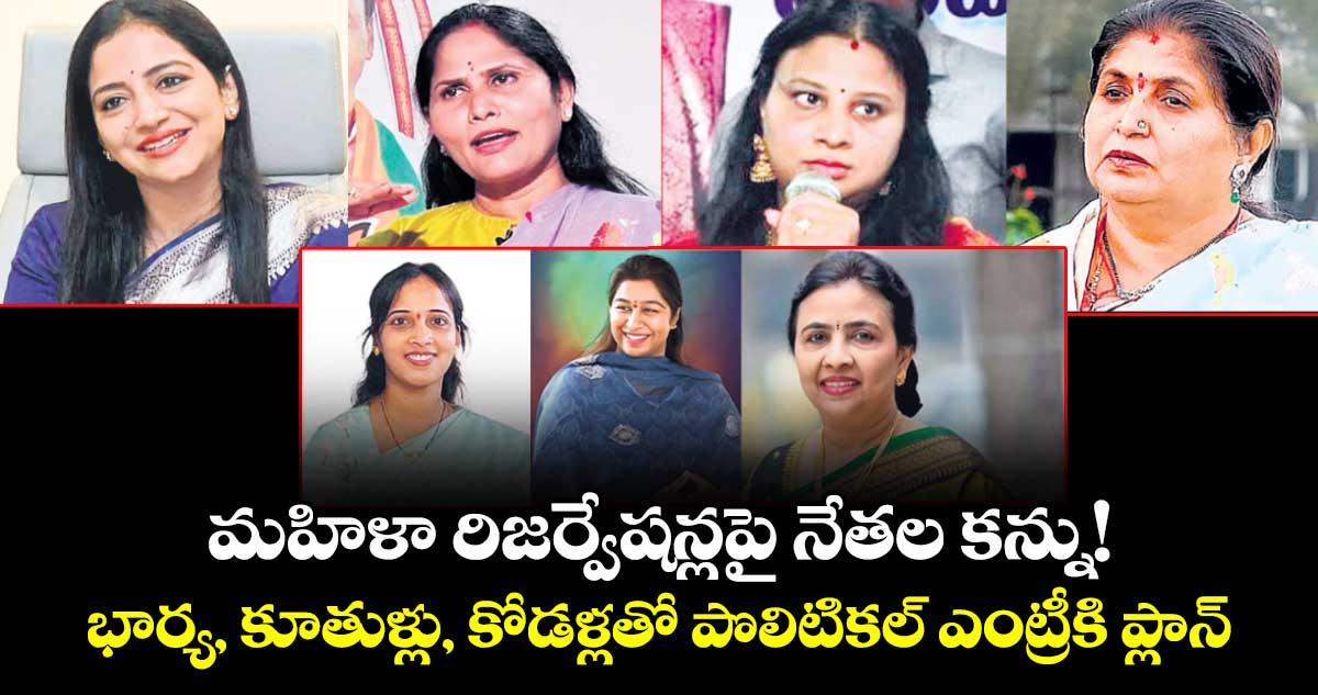 నియోజకవర్గాల పునర్విభజనతో రాష్ట్రంలో ఇప్పుడున్న 119 అసెంబ్లీ సీట్లు 179కి పెరగనున్నాయి. 33 శాతం విమెన్ రిజర్వేషన్ అమలైతే తెలంగాణలో వారికి ఏకంగా 59 సీట్లు దక్కనున్నాయి. మహిళలకు ఇంత పెద్ద సంఖ్యలో అసెంబ్లీ సీట్లు రిజర్వుకానుండడంతో పలువురు ప్రజాప్రతినిధులు, నేతలు తమ కుటుంబాల్లోని మహిళలకు రెండో సీటుపై ఇప్పటి నుంచే కన్నేస్తున్నారు. ఆ దిశగా భార్య, కూతు రు, కోడలుతో రాజకీయ పరిచయ కార్యక్రమం చేయిస్తున్నారు. పండుగలు, పబ్బాలు, ఇతర శుభ కార్యాలను పురస్కరించుకొని ఆయా నియోజకవర్గాల్లో ప్రజలకు శుభాకాంక్షలు చెపుతూ ఫ్లెక్సీలు, హోర్డింగ్లు, కటౌట్లు ఏర్పాటు చేస్తున్నారు. దీంతో వీటిపై జనాల్లో ఆసక్తికర చర్చ సాగుతోంది.