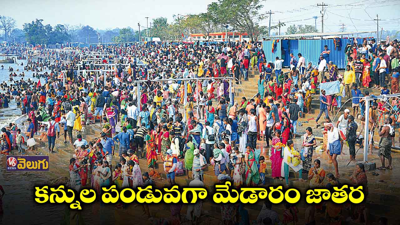 మహా జాతర ప్రారంభం కావడంతో మేడారం ప్రాంతంలోని జంపన్నవాగు, కొత్తూరు, నార్లాపూర్, కన్నెపల్లి, రెడ్డిగూడెం, ఊరట్టం పరిసర ప్రాంతాలు భక్తులతో నిండిపోయాయి. పుణ్య స్నానాలతో జంపన్న వాగు జనంతో కిక్కిరిసిపోయింది. లక్షలాదిగా వస్తున్న భక్తులతో అడవి దారులన్నీ పోటెత్తాయి. మేడారం దారులన్నీ వాహనాలు, భక్తులతో నిండిపోయాయి.