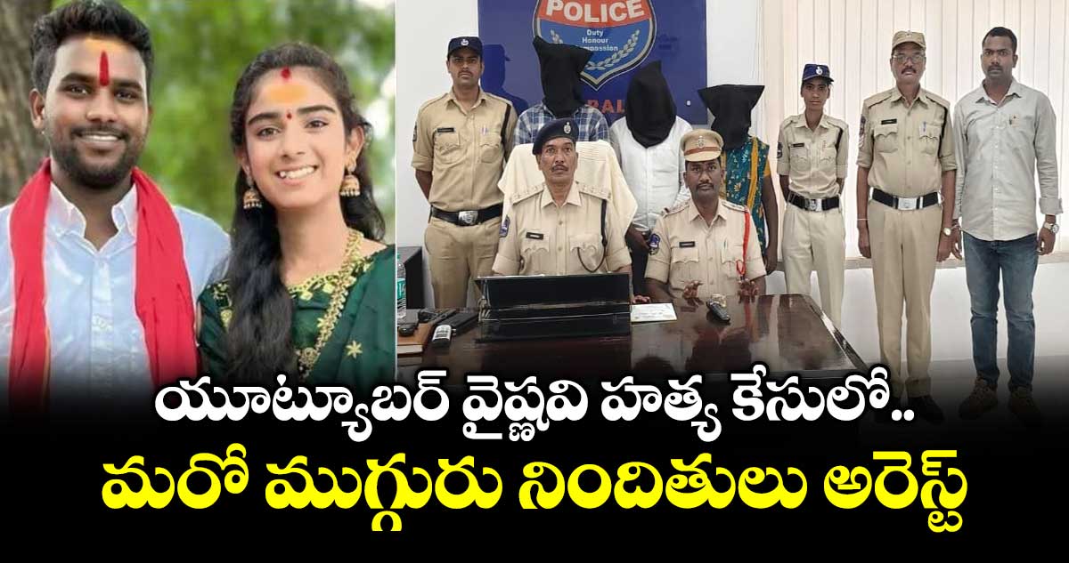 జగిత్యాల: యూట్యూబర్ వైష్ణవి హత్య కేసులో మరో ముగ్గురు నిందితులను పోలీసులు అరెస్ట్ చేశారు. వరకట్నం కోసం వైష్ణవిని హత్య చేయడానికి ఆమె భర్త హరిబాబును ప్రేరేపించిన అతని తల్లి లక్ష్మి, అన్నలు ఆనంద్, అశోక్ను గురువారం (మార్చి 19) అదుపులోకి తీసుకుని రిమాండ్కు తరలించినట్లు మెట్పల్లి డీఎస్పీ రాములు తెలిపారు.