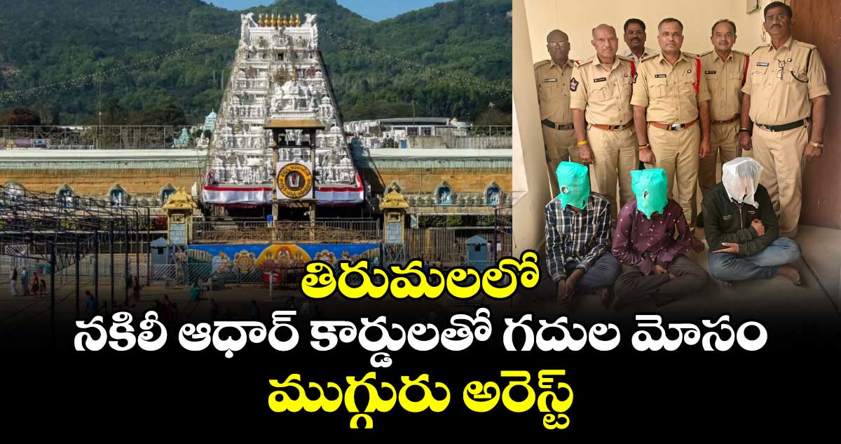 అమరావతి: తిరుమలలో నకిలీ ఆధార్ కార్డులతో గదుల మోసానికి పాల్పడుతున్న ముగ్గురిని పోలీసులు అరెస్ట్ చేశారు. వివరాల ప్రకారం.. గంగా ప్రసాద్ కేశవరావ్, దినేష్, కిశోర్ కుమార్ ముగ్గురు తిరుమలలో భక్తులకు గదులు దొరకకపోవడాన్ని ఆసరాగా చేసుకున్నారు. సులభంగా డబ్బు సంపాదించాలనే ఉద్దేశంతో నకిలీ ఆధార్ కార్డులతో తిరుమలలో రూములు బుక్ చేసేవారు.